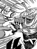 可以看得出,长十郎手上的那把"平目鲽"突然变得无比的巨大!就可以看得出有多大,至少有几米长。要不是鸣人的分身刚好被黑绝绊倒了,可能也会一起被砍杀。长十郎的自信回来了!...